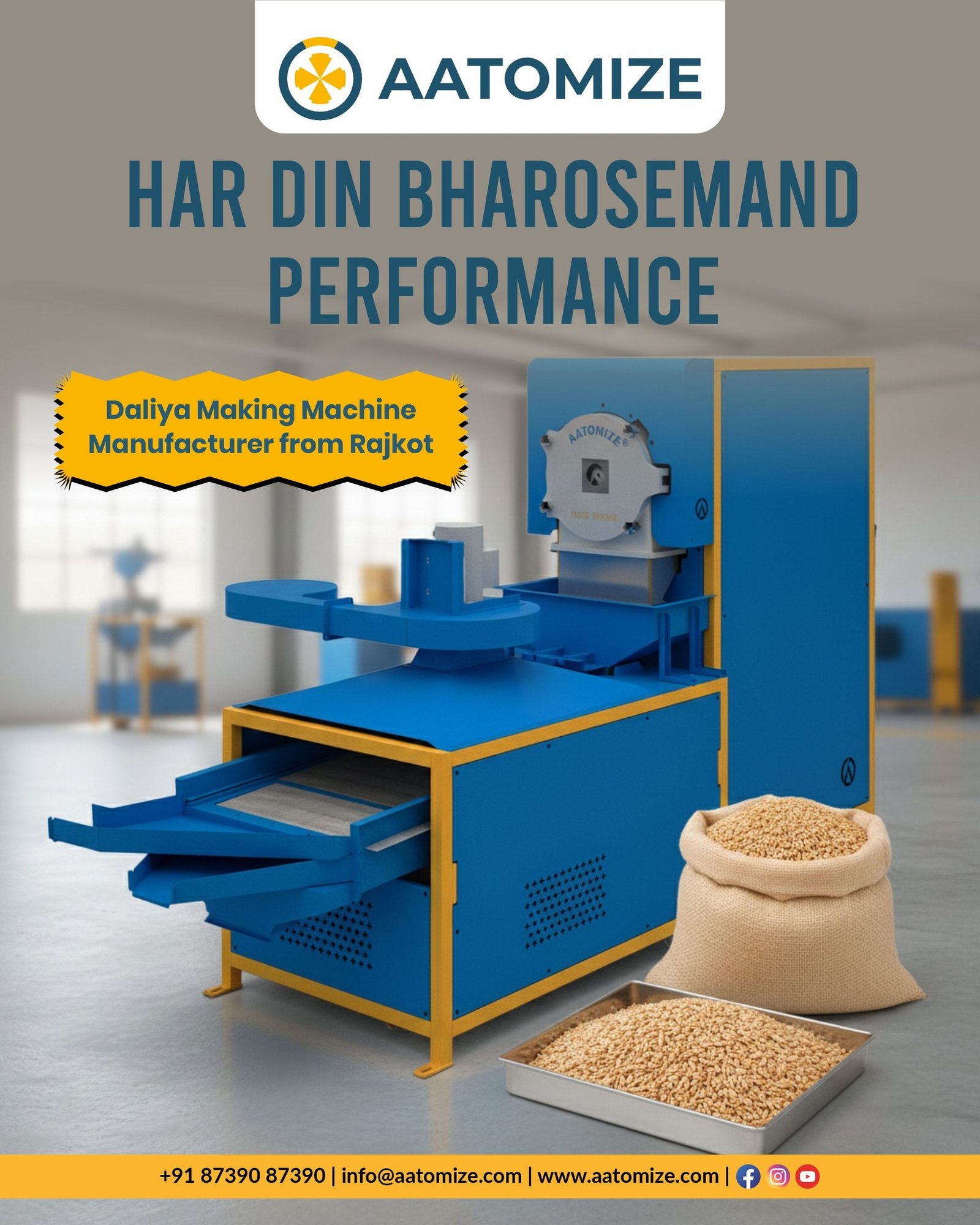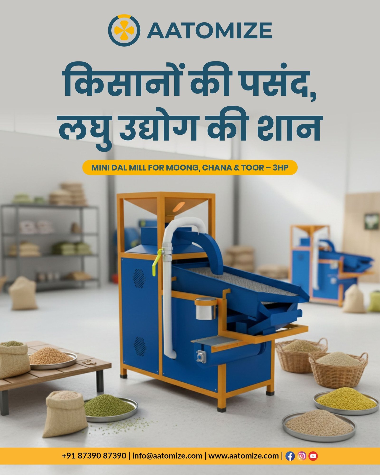Aatomize Dalmills is a trusted name in dal mill machine manufacturing, delivering reliable and high-performance milling solutions from our base in Shapar (Veraval), Rajkot, Gujarat. We specialize in designing machines that combine robust construction, efficient output, and user-friendly operation to meet the real-world needs of today’s pulse processors. Driven by innovation and backed by hands-on industry experience, we focus on maximizing yield, minimizing grain breakage, and ensuring long-term durability. At Aatomize Dalmills, every machine reflects our commitment to quality, precision engineering, and customer success.